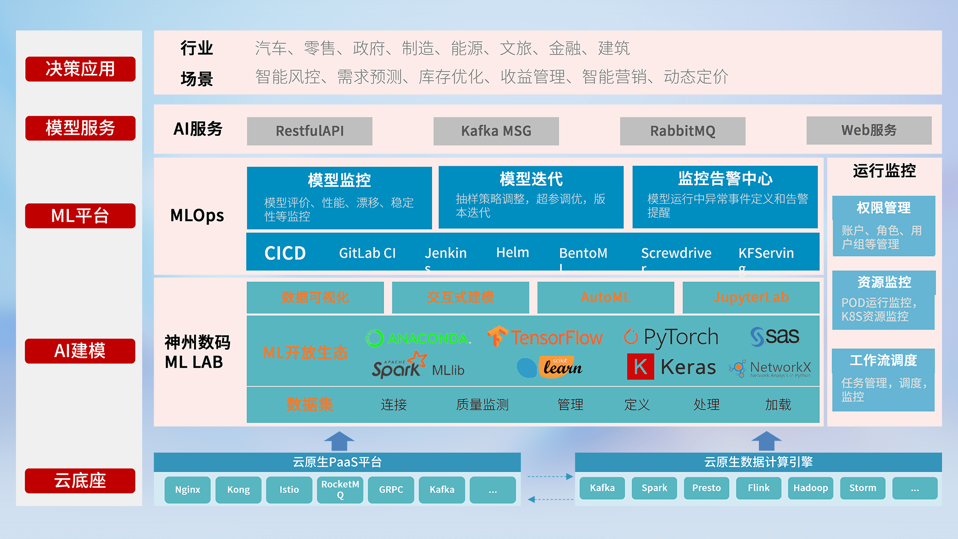 数据+模型双引擎驱动,,,面向智能服务场景,,,快速灵活利用AI技术,,,,支持业务决策,,助力企业智能化转型破局。。